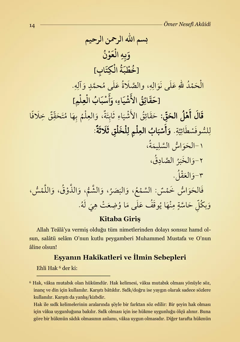Ömer Nesefî Akaidi Tercümesi (Kırık Manalı - İzahlı)
