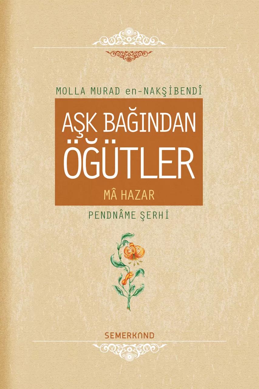 AŞK BAĞINDAN ÖĞÜTLER - MÂ HAZAR Şark klasikleri arasında önemli bir yeri olan Şeyh Ferîdüddin-i Attâr?ın (k.s) Pendnâme?si birçok âlim ve mutasavvıf tarafından talebelerine okutulmuştur. Pendnâme üzerine de birçok âlim şerh yazmıştır. Bu esere yazılan şerhlerden biri de Molla Murad en-Nakşinbendî (k.s) hazretlerine ait olan Mâ Hazar isimli eserdir. Semerkand Yayınları Tasavvuf Klasikleri arasından çıkan Mâ Hazar (Aşk Bağından Öğütler); güzel ahlâk, iman ehlinin alâmetleri, dünyayı terk etme, Allah zikri ve faziletleri gibi konuları içeriyor. Eseri yayına Yrd. Doç. Dr. İbrahim Kunt ve Mehmet Ali Özkan hazırladı. Ayrıca Ferîdüddin Attâr?ın (k.s) ve Molla Murad en-Nakşibendî?nin (k.s) hayatı ve eserleri de anlatılıyor. Bununla birlikte pendnâme-nasihatnâme geleneğinin İslâm ahlâkındaki yeri ve önemine de değiniliyor.